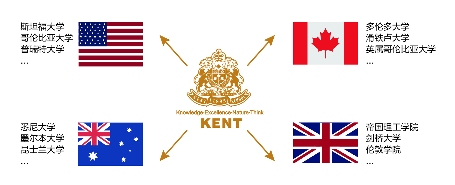 2008年至今,100%的肯特毕业生升入北美及其他英语国家大学,其中90%以上的学生进入多伦多大学等世界名校。