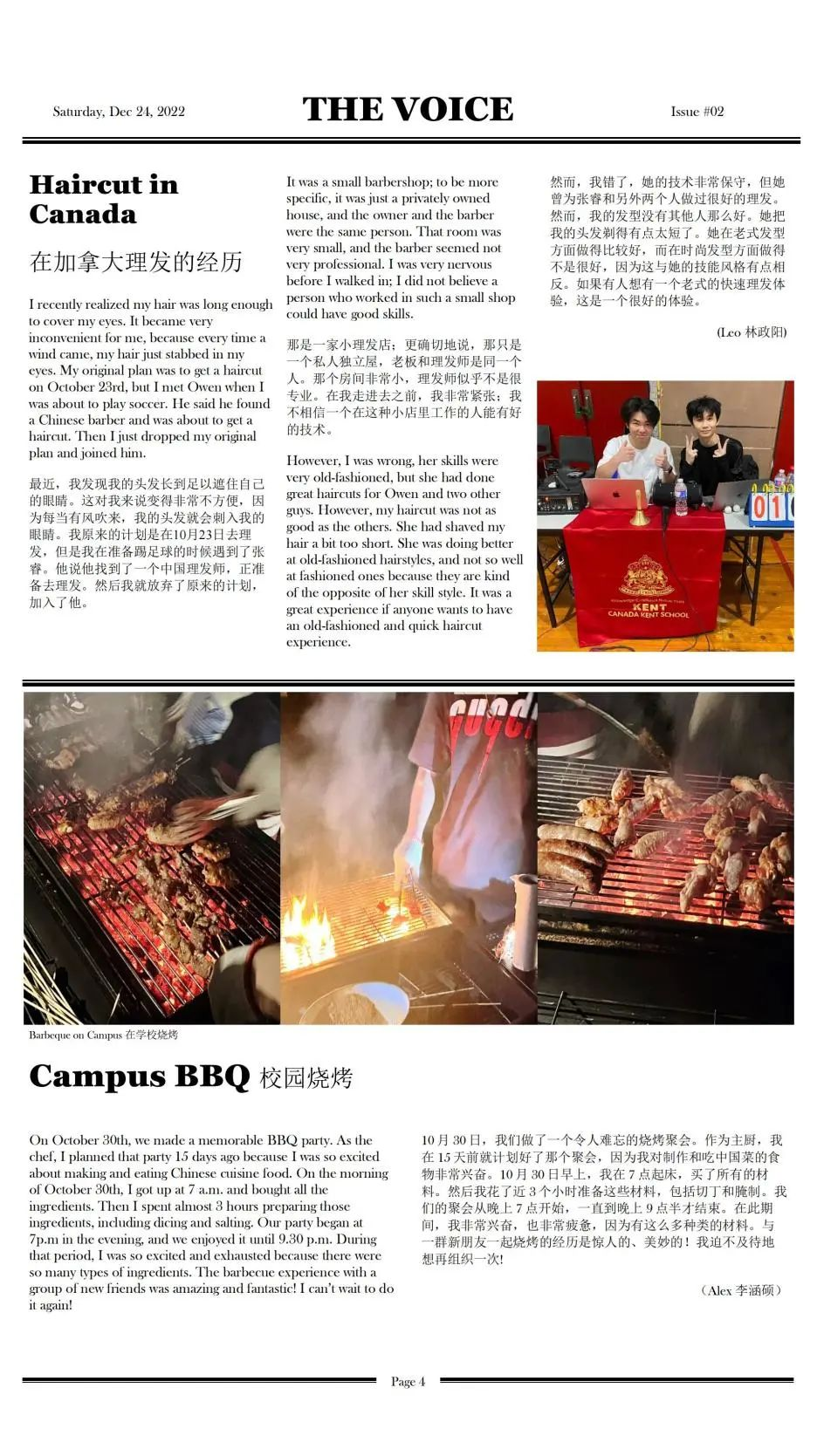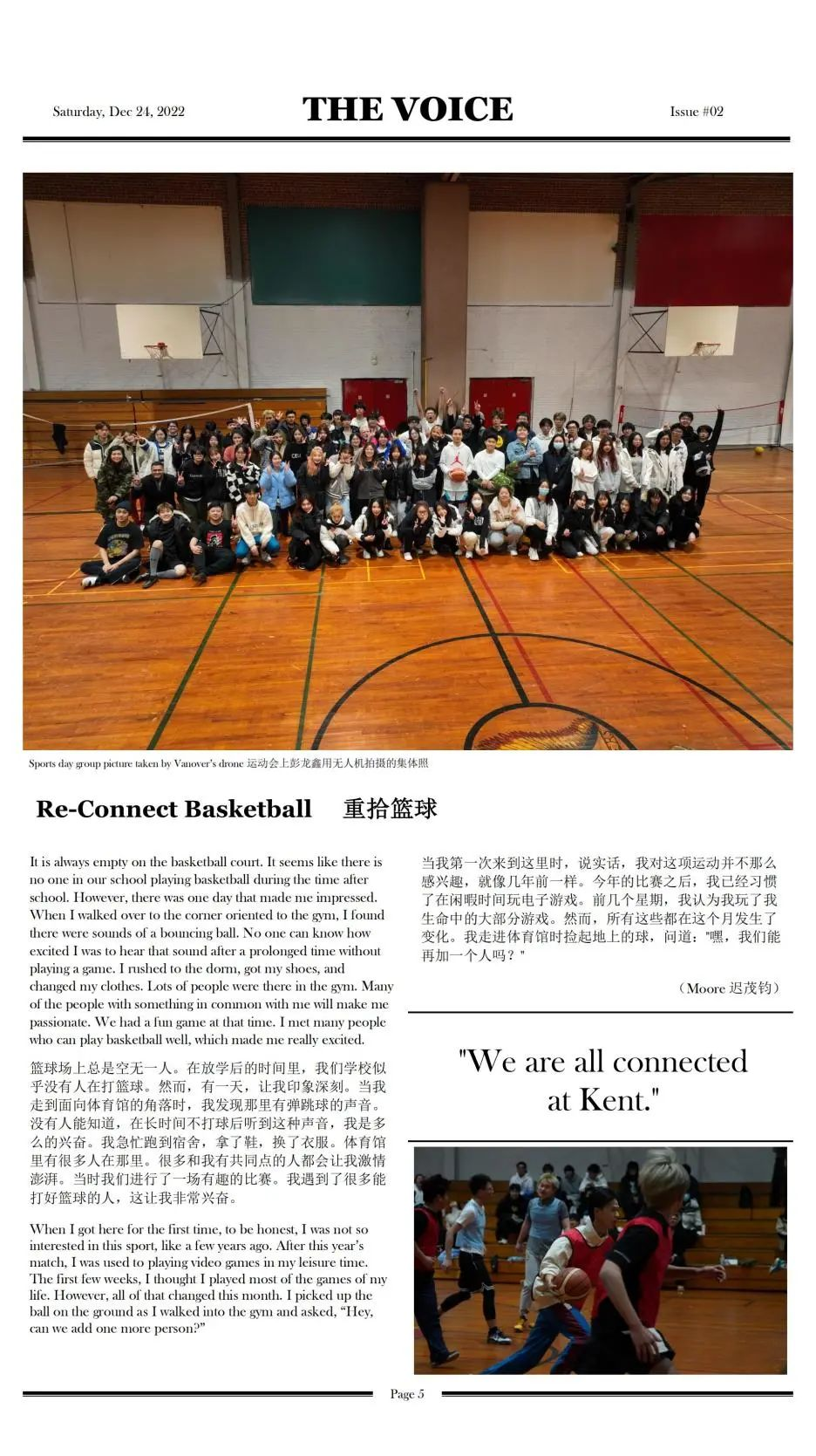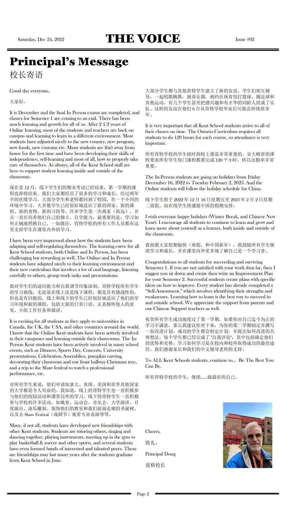 校刊《肯特之音》第二期发布。本期内容由线上线下学生共同参与投稿,还有Doug校长年度回顾,全员参与度超高。