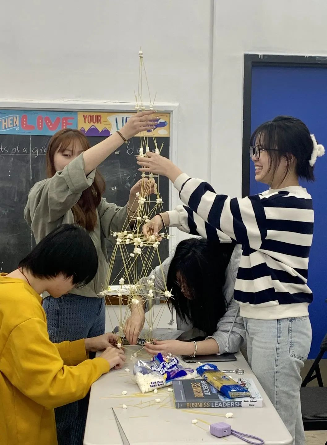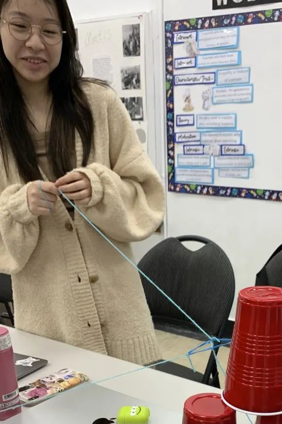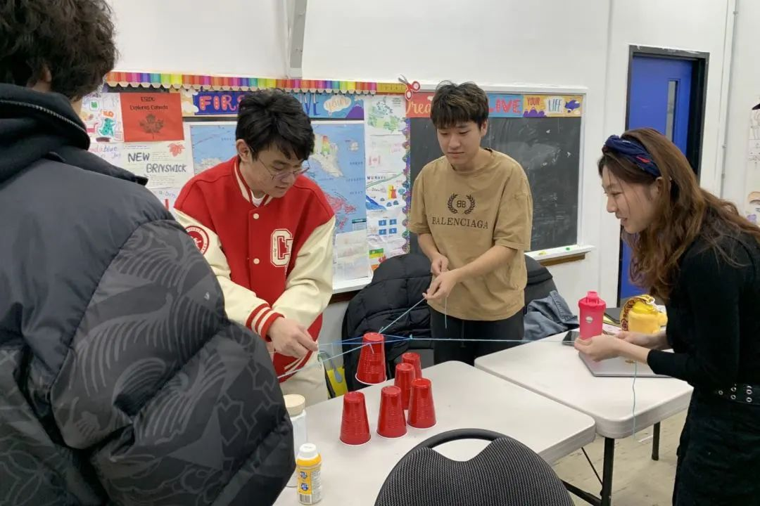 用易断的意大利面和不易定型的棉花糖搭出一座高塔,这是对学生们决策能力和团队配合的锻炼。